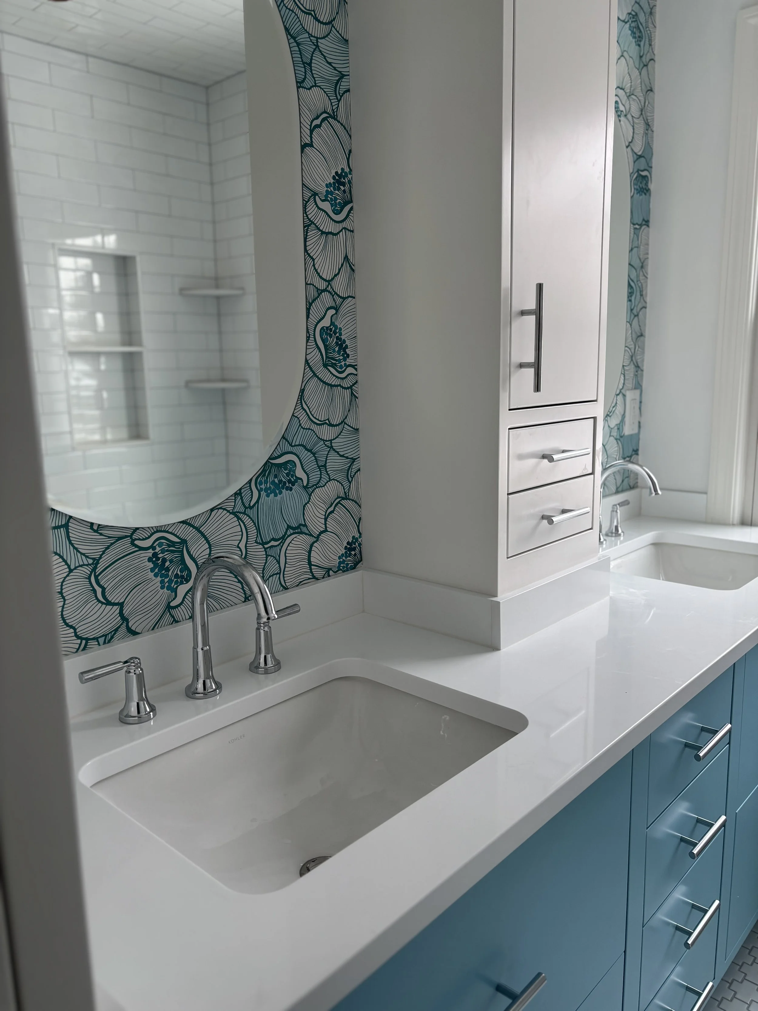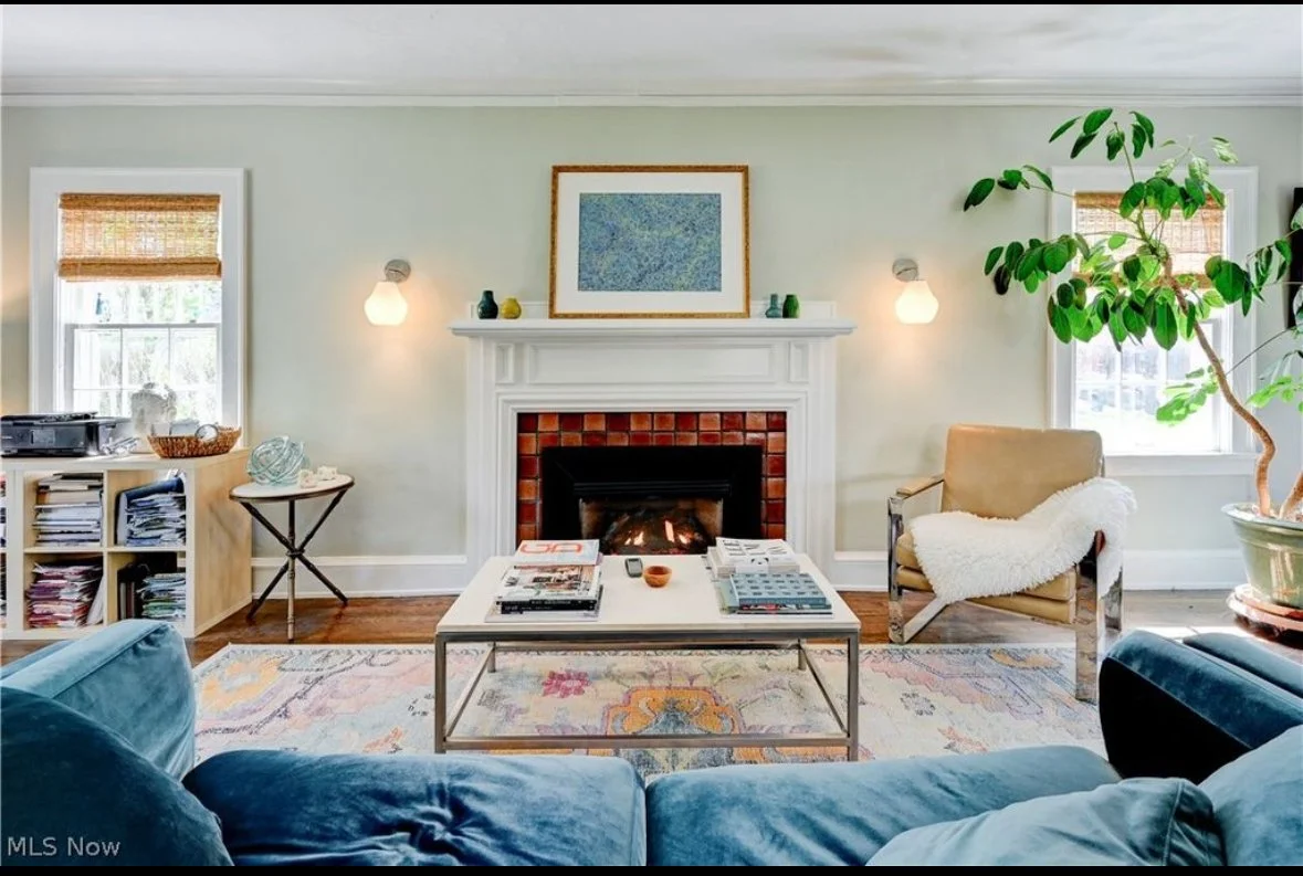 We took a dark dreary living room and spiced it up with color, texture and amazing local art.