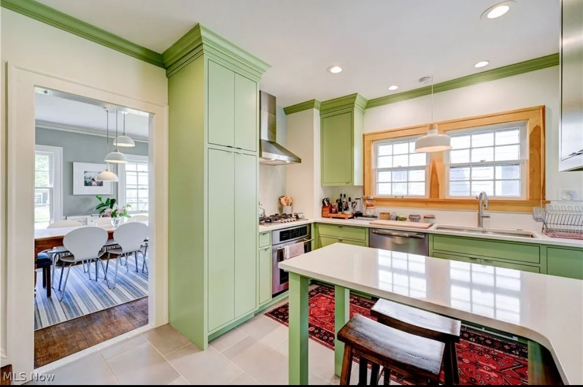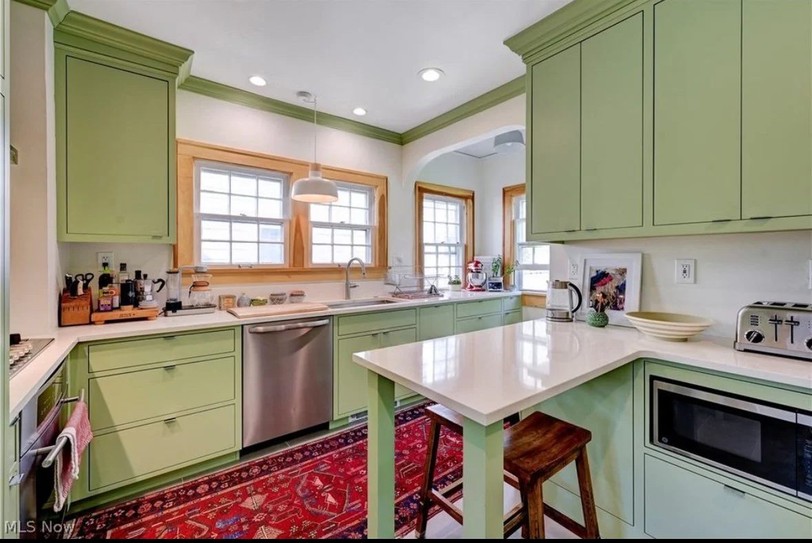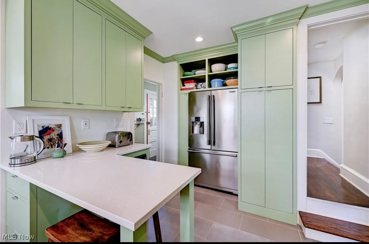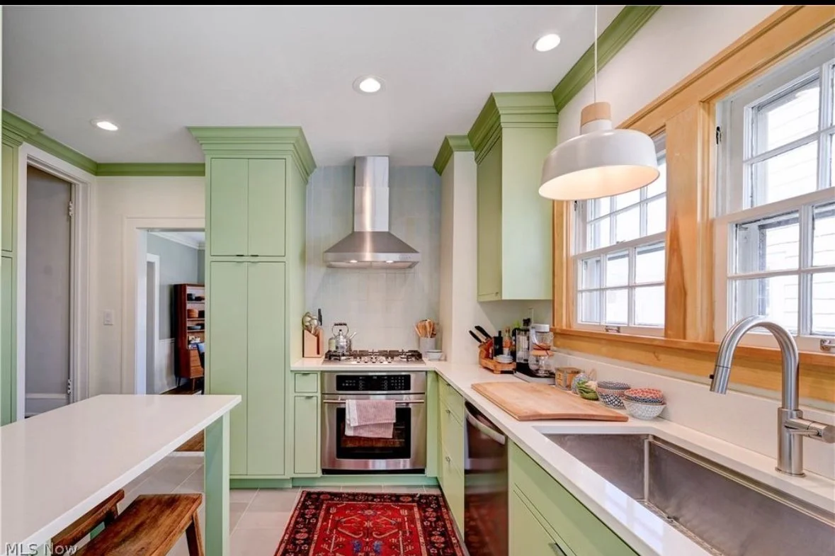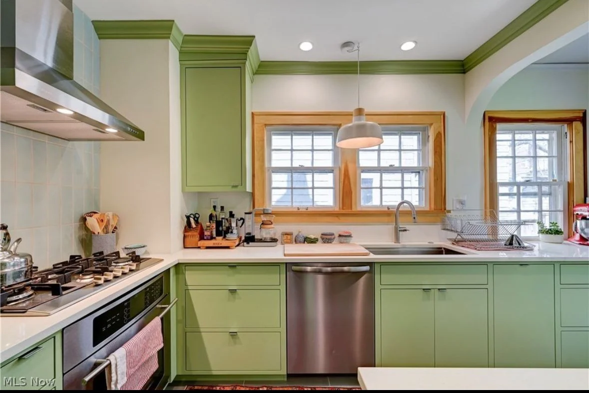 Soft Avocado and charcoal gray gave this kitchen the update is sorely needed!