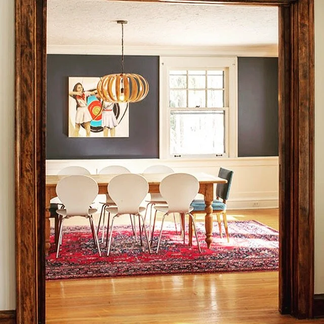 I grew up in the Pacific Northwest, where we put quality and comfort first.Spending a fortune on a chair silly, when you can thrift and give it a new lease on life with amazing fabric! Good Design does not cost a fortune, spend your money on custom woodwork and find an awesome deal on a rug!